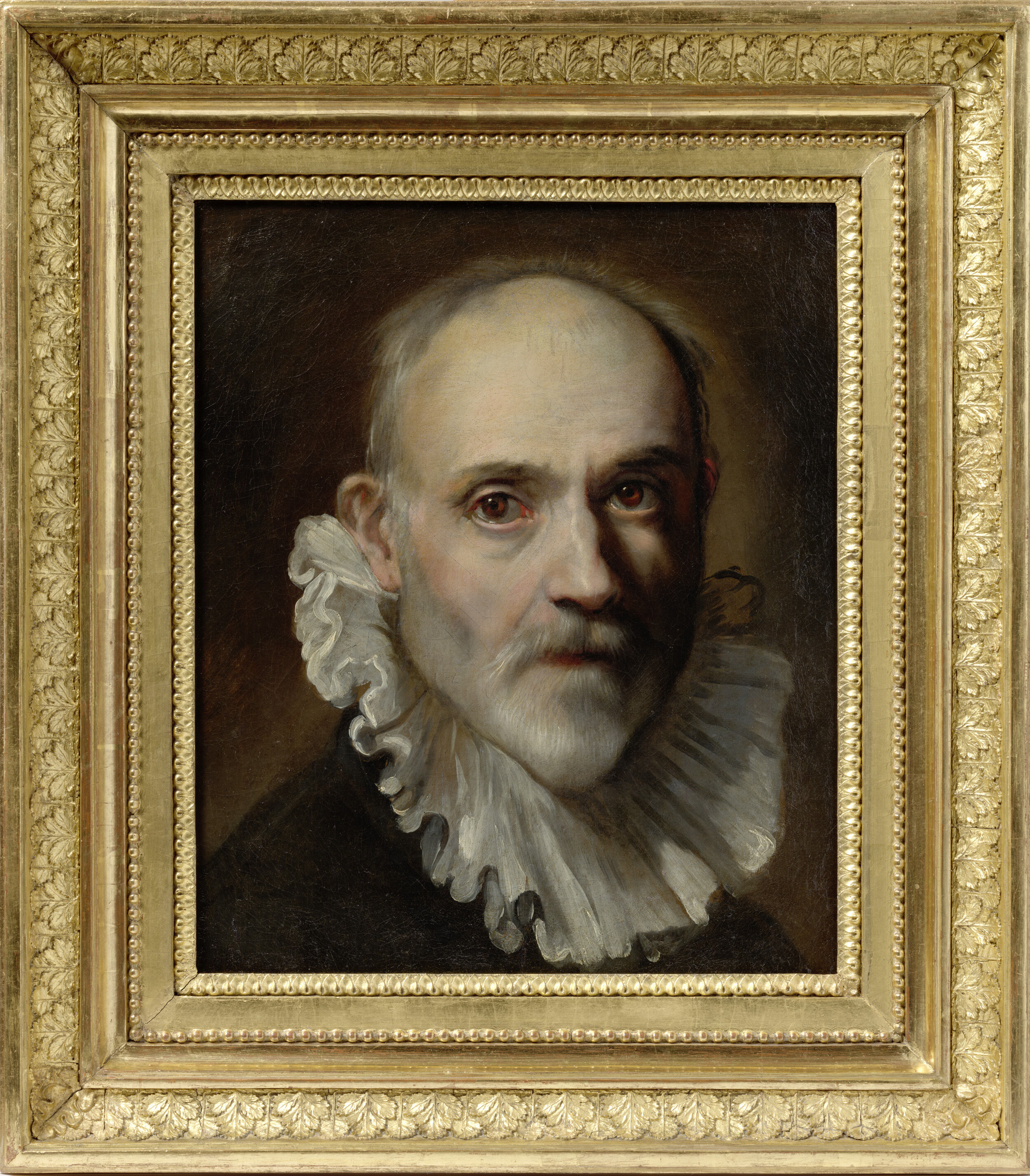 Barocci leaves us an expressive yet intimate picture: a snapshot and a character study. With large, alert eyes, still expressing detachment, the painter examines the viewer. The left side of the face is in shadow; the right side has a bright, pastel-like complexion with transparent nuances. This may be attributed to the influence of Antonio da Correggio and Venetian Renaissance artists. Barocci worked with flowing, superimposed colour fields ranging from gradated shades of grey to ochre. The ruff is painted with light, swift brush-strokes. The hollow cheeks and pale complexion indicate a severe long-term illness and constant poor health. Barocci suspected that due to his talent, he had been poisoned by envious colleagues in Rome. Contemporaries described him as a cantankerous hypochondriac. In spite of it all, thanks to his patron the duke, he was held in high esteem at the Urbino court until the end of his life, and received numerous commissions from religious and secular dignitaries.