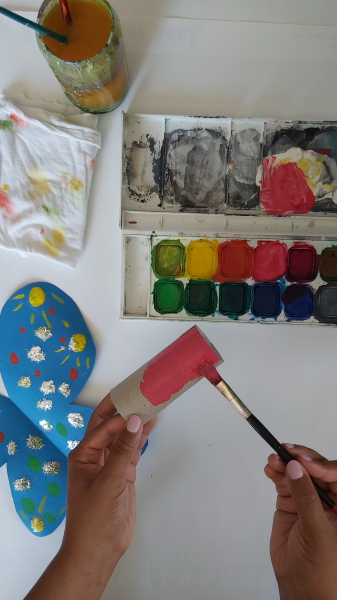 Für unsere Mal-und Bastelaktion könnt ihr euch einen eigenen Phantasie-Schmetterling ausdenken, dazu braucht ihr folgendes:
