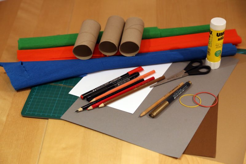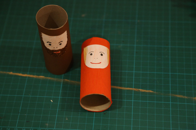 Klopapierrollen, die Anzahl richtet sich danach wie viele Figuren du machen möchtest. Um Maria und Josef sowie Ochs und Esel basteln zu können, benötigst du drei Stück.