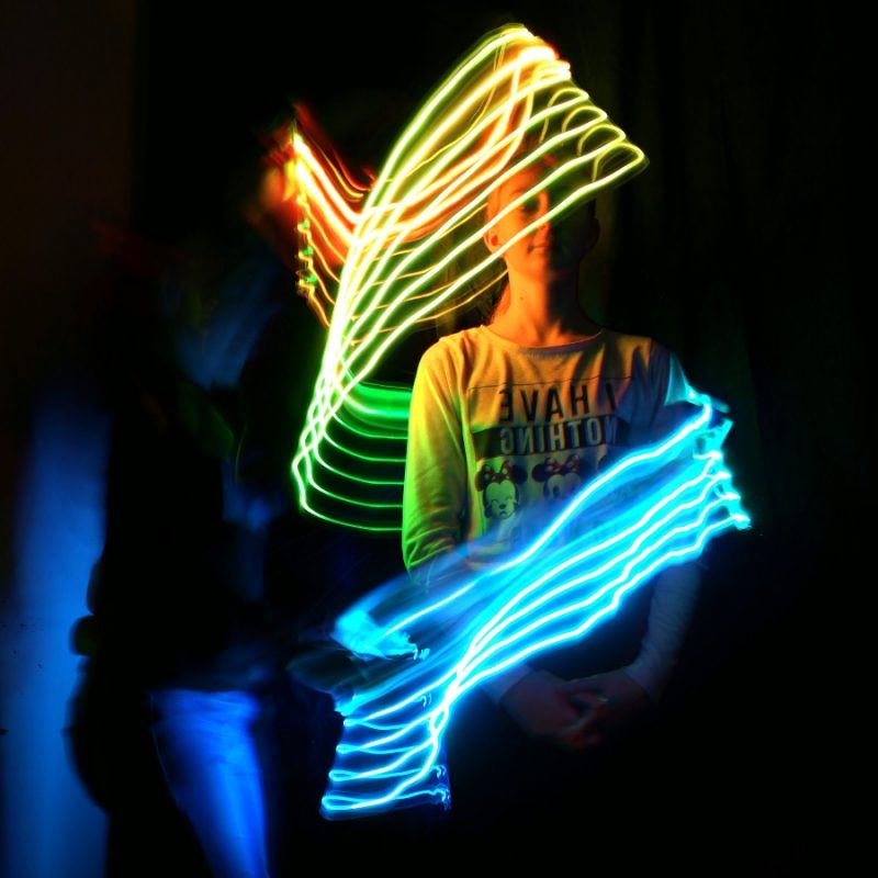 Probiere auch unterschiedliche Lichtquellen aus. Je nachdem was du verwendest, können ganz unterschiedliche Lichtspuren entstehen.