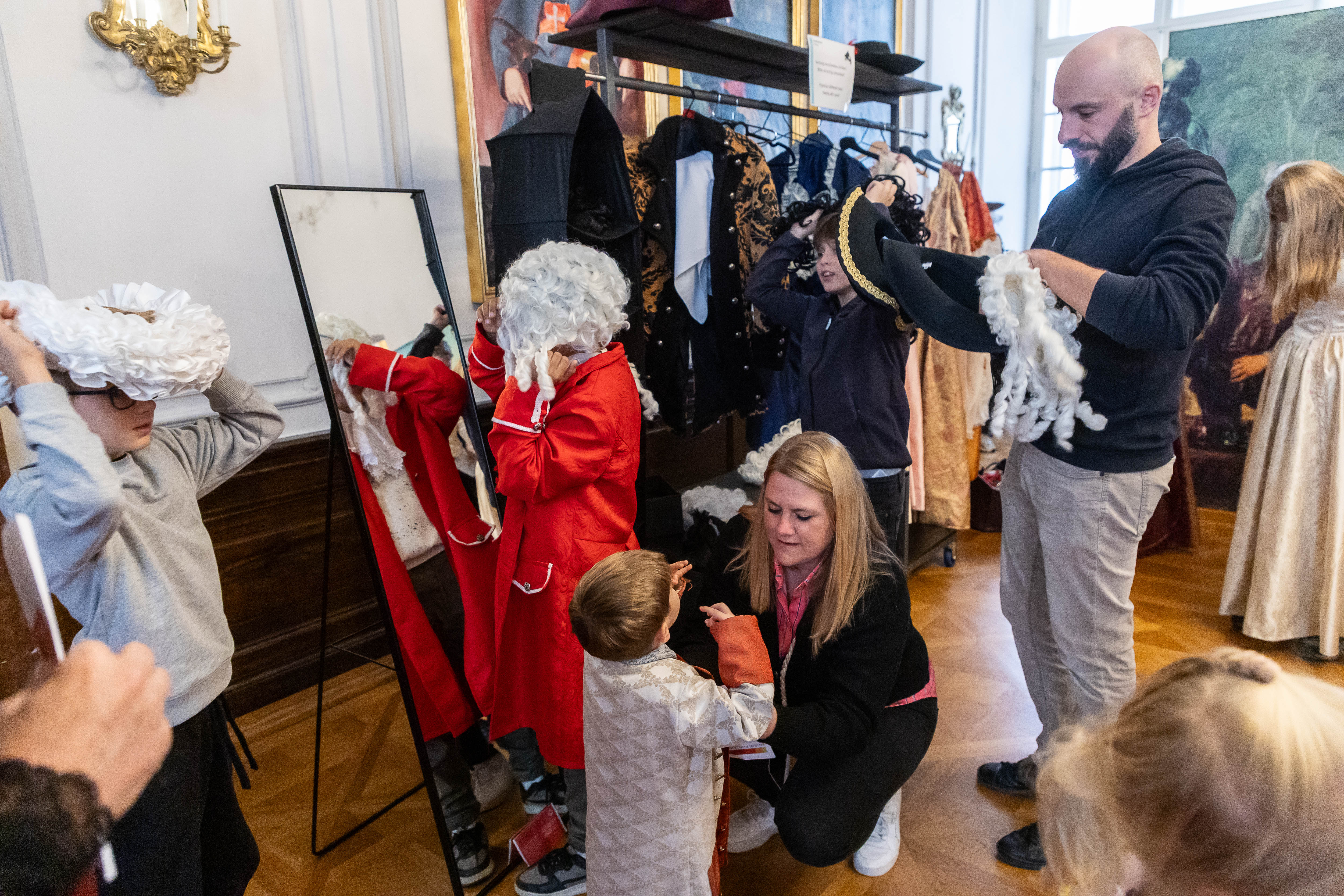 Zwischen dem dritten und vierten Akt von L’Orfeo öffnete sich das DomQuartier für eine barocke Flanage: Besucherinnen und Besucher bewegten sich durch Prunkräume, lauschten Kammerprogrammen in wechselnden Sälen, tanzten historische Tänze und probierten Spiele des 17., 18. und 19. Jahrhunderts.
