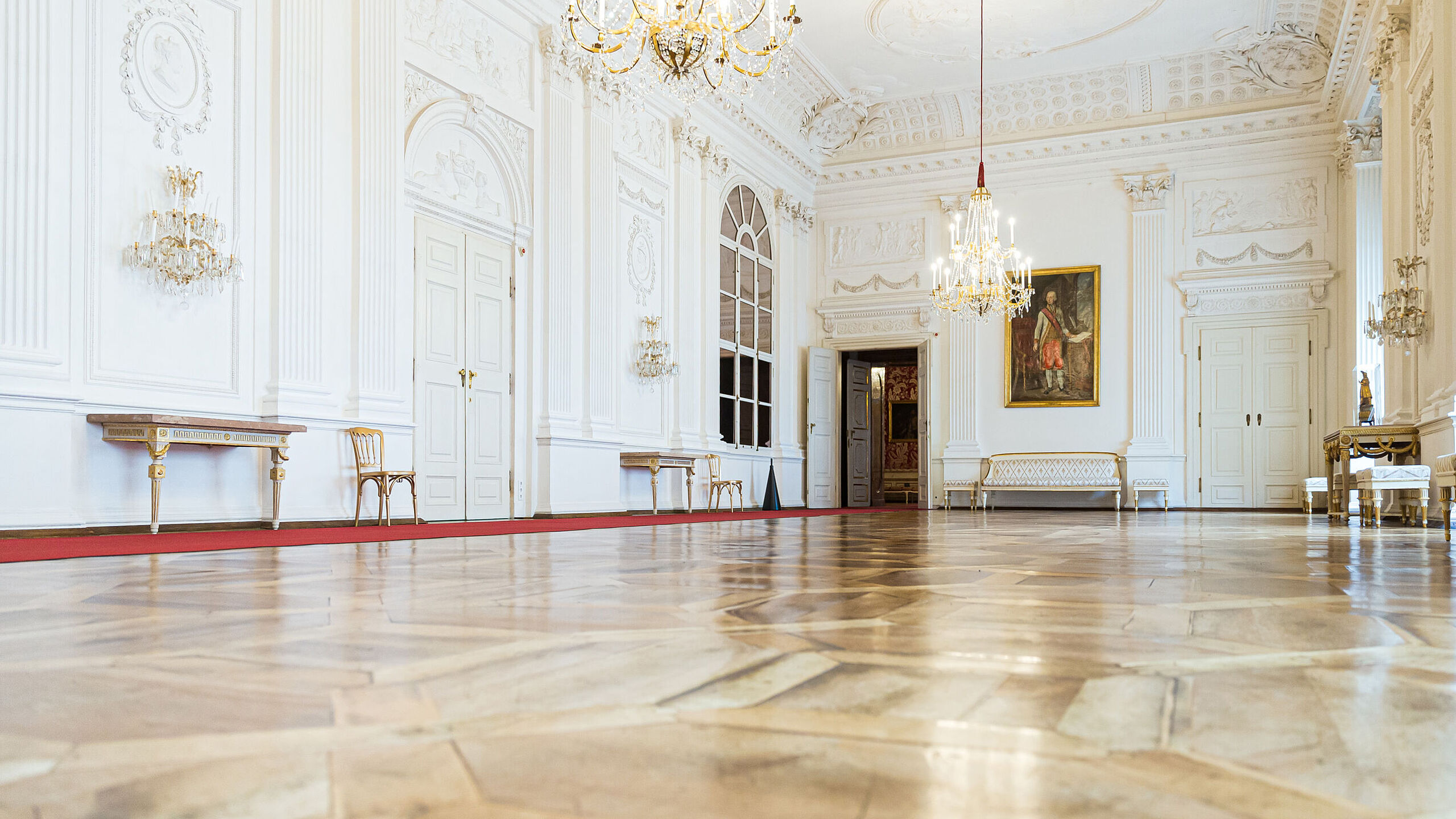 Die ausgefeilte Stuckatur stellt ein überzeugendes Beispiel der hochentwickelten Ausstattungskunst des späten 18. Jahrhunderts dar und macht den Weißen Saal zu einem der einheitlichsten Räume der Residenz zu Salzburg. Der Saal ist durch und durch geprägt vom Klassizismus!