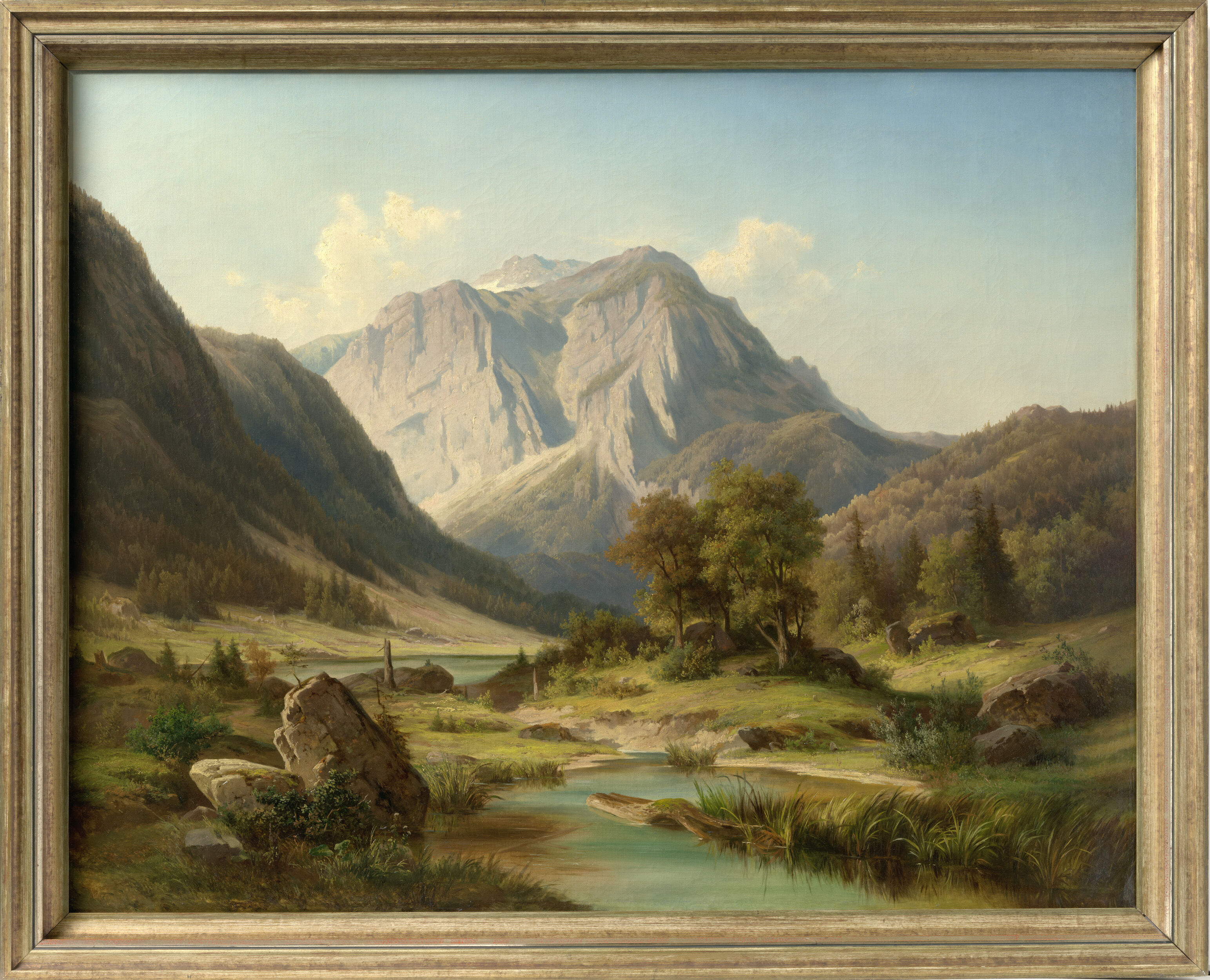 Die "Loferer Steinberge" zählten im 19. Jahrhundert nicht zu den inflationär wiedergegebenen Sujets wie etwa der Watzmann. Zudem entspricht die in diesem Werk gewählte Blickrichtung nicht der anhand von Bildern und später Postkarten überlieferten Standardansicht, bei der hinter Lofer zwischen Ochsen- und Breithörnern die unverkennbare Spitze des Kreuzreifhorns aufragt. Vermutlich zeigt dieses Werk die „Seitenansicht“ eines Teils der Horngruppe der nördlichen Kalkalpen: jene des Ochsenhorns.