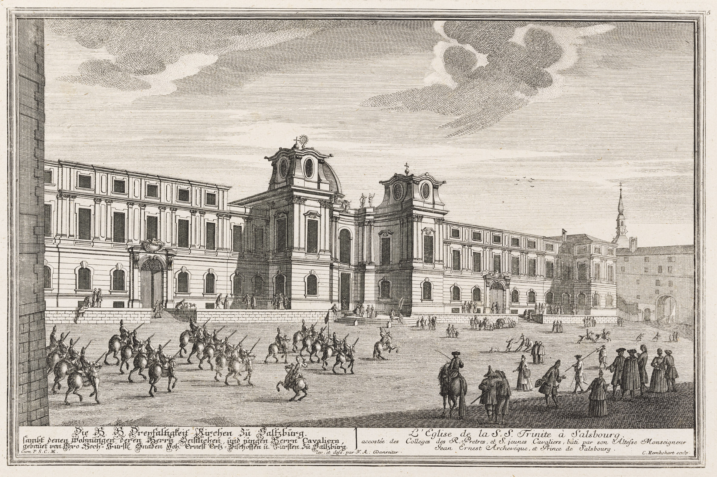 Die neue oder Universitäts Kirchen zu Saltzburg gebaut von Ihro Hoch-Fürstl. Gnaden Johann Ernest Ertz-Bischoffen und Fürsten zu Saltzburg. / L`Eglise neufe, ou de l`Université a Salsbourg bait par son Altesse Monseigneur Jean Ernest Archevéque et Prince de Salsbourg., um 1731