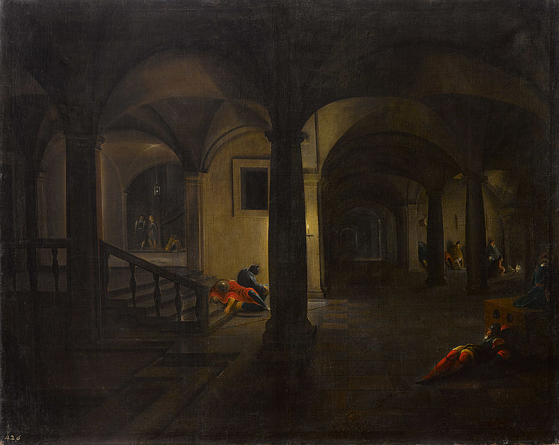 Hendrick van Steenwyck d. J. , nach (1580 Antwerpen – 1649 London) Steenwyck lernt bei seinem Vater Hendrick van Steenwyck d. Ä., in dessen Stil er Kircheninnenräume malt. Frans Francken d. J. staffiert diese manchmal mit Kirchenbesuchern aus. Eine arbeitsteilige Spezialisierung scheint bei Steenwyck Usus, denn verschiedene Künstler versehen seine Bilder mit Staffage. Steenwyck hingegen malt Hintergründe zu Bildnissen anderer Maler. Interieurs von Schlössern und Palasthöfen – datiert zwischen 1603 und 1649 – zählen zu Steenwycks Oeuvre. Ebenso Kerkergewölbe mit der Enthauptung Johannes’, der Befreiung Petri oder die Studierstube des hl. Hieronymus. Oftmalige Verwechslungen mit Werken seines Vaters und Pieter Neeffs d. Ä. werden erwähnt.